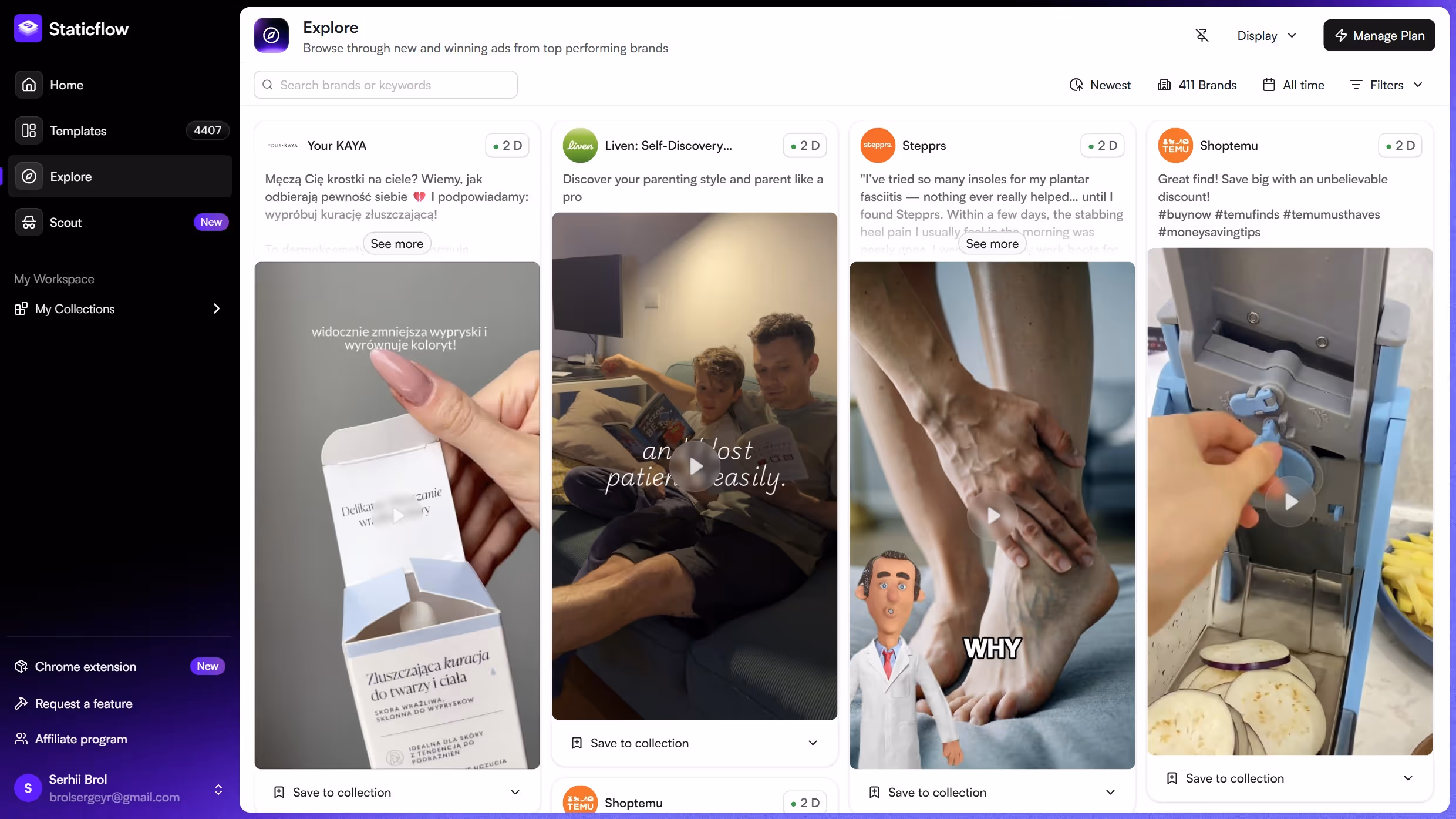 āBefore Staticflow, I had to scout ad library for hours to find inspiration. Now all our creative reference is stored in one place. I'm obsessed...ā